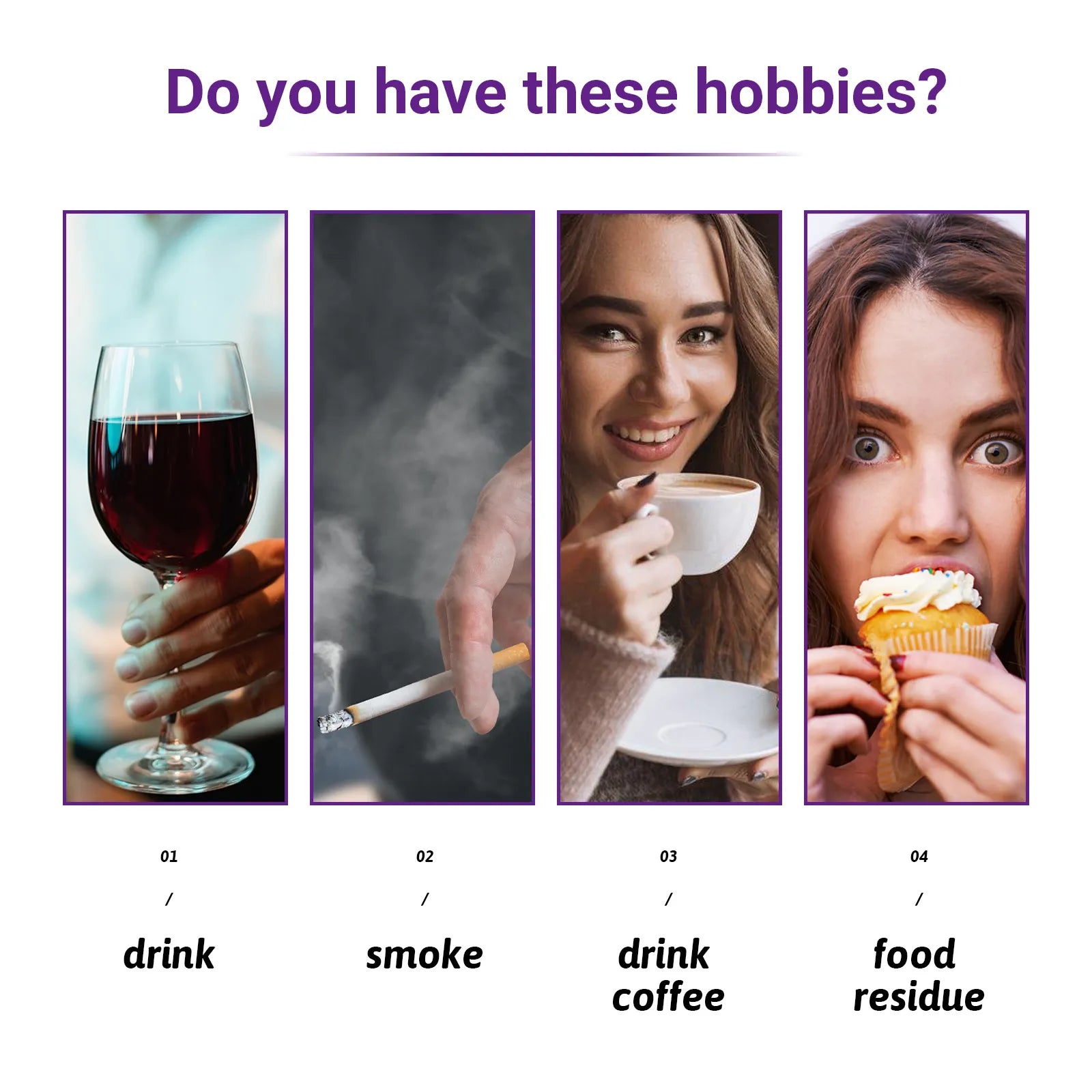 - Anti-Yellow Formula: Targets stubborn stains caused by coffee, tea, wine, and smoking.